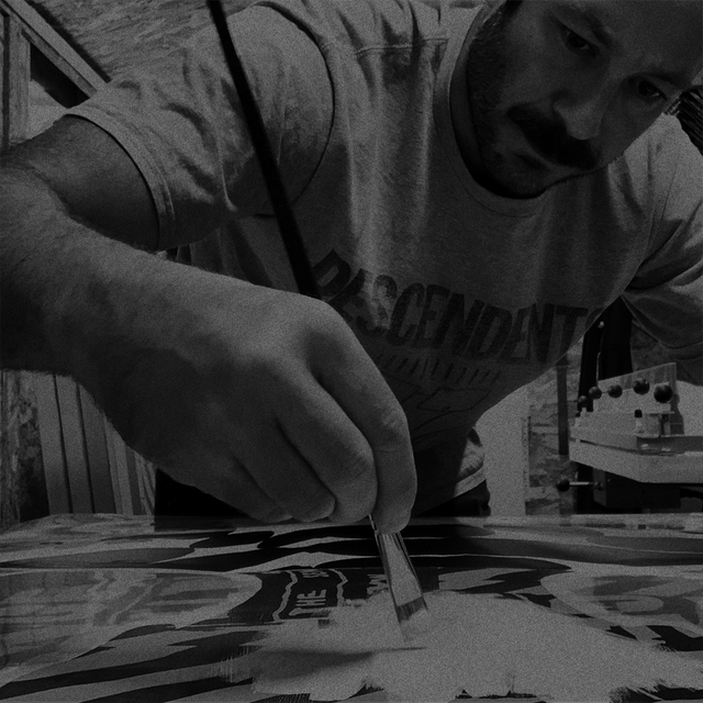 His compositions unfold through layered processes that merge digital and traditional techniques. Spray paint, screen printing, hand-drawn halftones and lo-fi textures combine to create works that are both tactile and luminous. There’s a deliberate push and pull at play between spontaneity and control, analogue and digital, reverence and rebellion.